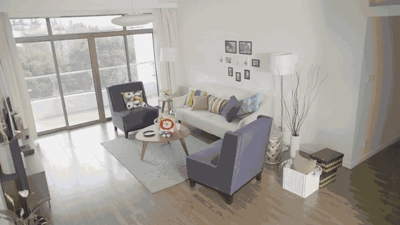 开启回家模式,车库门定时自动开启,室内灯光调节到合适亮度,窗帘拉开,夕阳洒满房间,新风系统、空调自动开启,进门便舒适宜人。