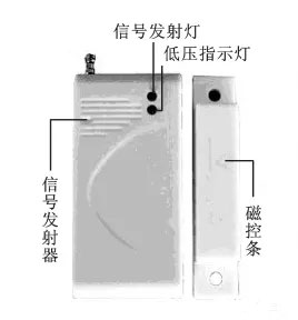 磁控条内部有一块永久磁铁,用来产生恒定的磁场。门磁主体内部有一个常开型的干簧管。当永磁体和干簧管靠得很近时,门磁传感器处于工作守候状态;当永磁体离开干簧管一定距离时,门磁传感器处于常开状态。磁控条和门磁主体分别安装在门框和门扇里。当门关闭时,磁控条和门磁主体靠近,干簧管和永磁体也很近,此时干簧管吸合,门磁传感器处于工作守候状态。当门打开时,干簧管和永磁体离开一定距离,干簧管恢复到断开状态。