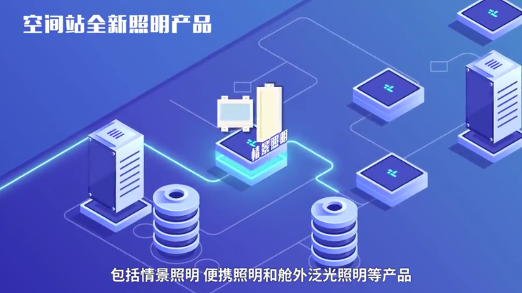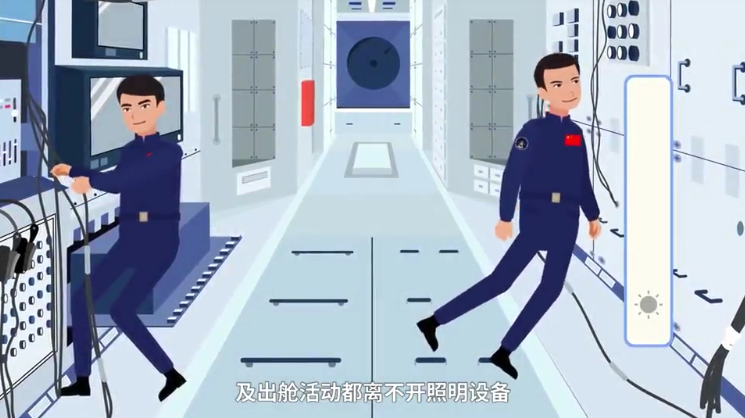 空间站照明子系统是我国首次在空间飞行器上应用情景模式可调照明技术,也是全球首次在大型载人航天器内部全范围应用情景照明技术。系统可以为空间站组合体提供舱内、舱外照明支持,照明产品包括情景照明、便携照明和舱外泛光照明等。
