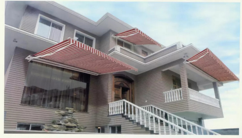 电动遮阳篷的电机隐藏于卷管内,通过电机带动铝合金卷管转动,实现面料的收放,该系统可用手动、电动开关、手机遥控控制。
