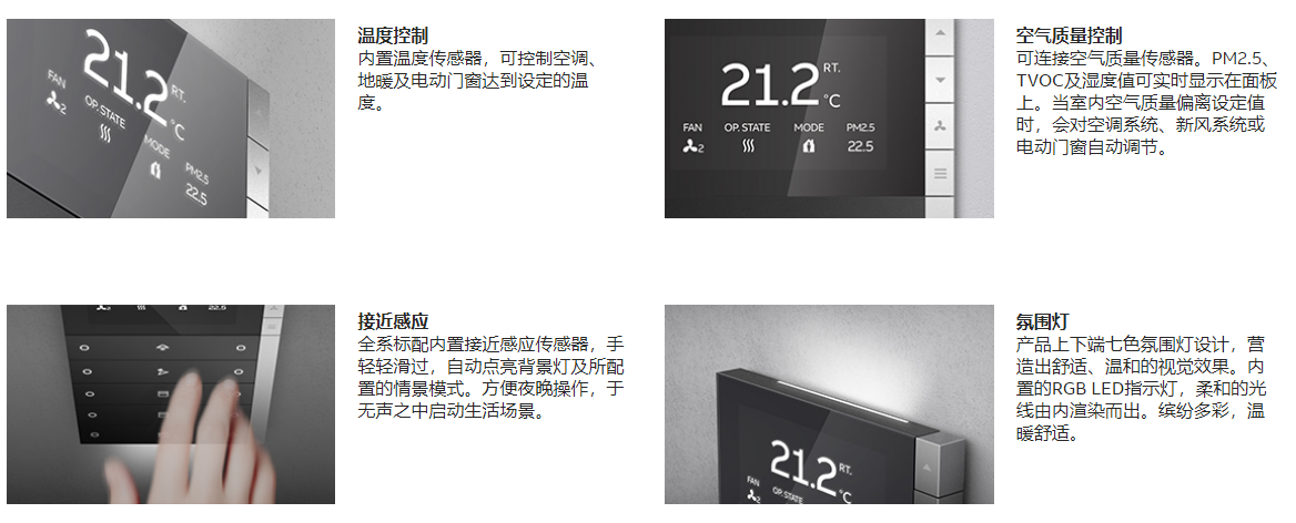 2018年4月,ABB发布了全新智能产品—ABB i-bus® KNX PEONIA®系列智能面板。此产品是一款高度集成的智能产品,一块智能面板,集成了照明、温度、电动门窗、空调、地暖、场景及接近感应传感器,在项目启动初期,设计团队与市场团队做了大量的内部客户和外部客户的调研,了解客户对外观、材质、手感、功能、安装等各方面的需求。