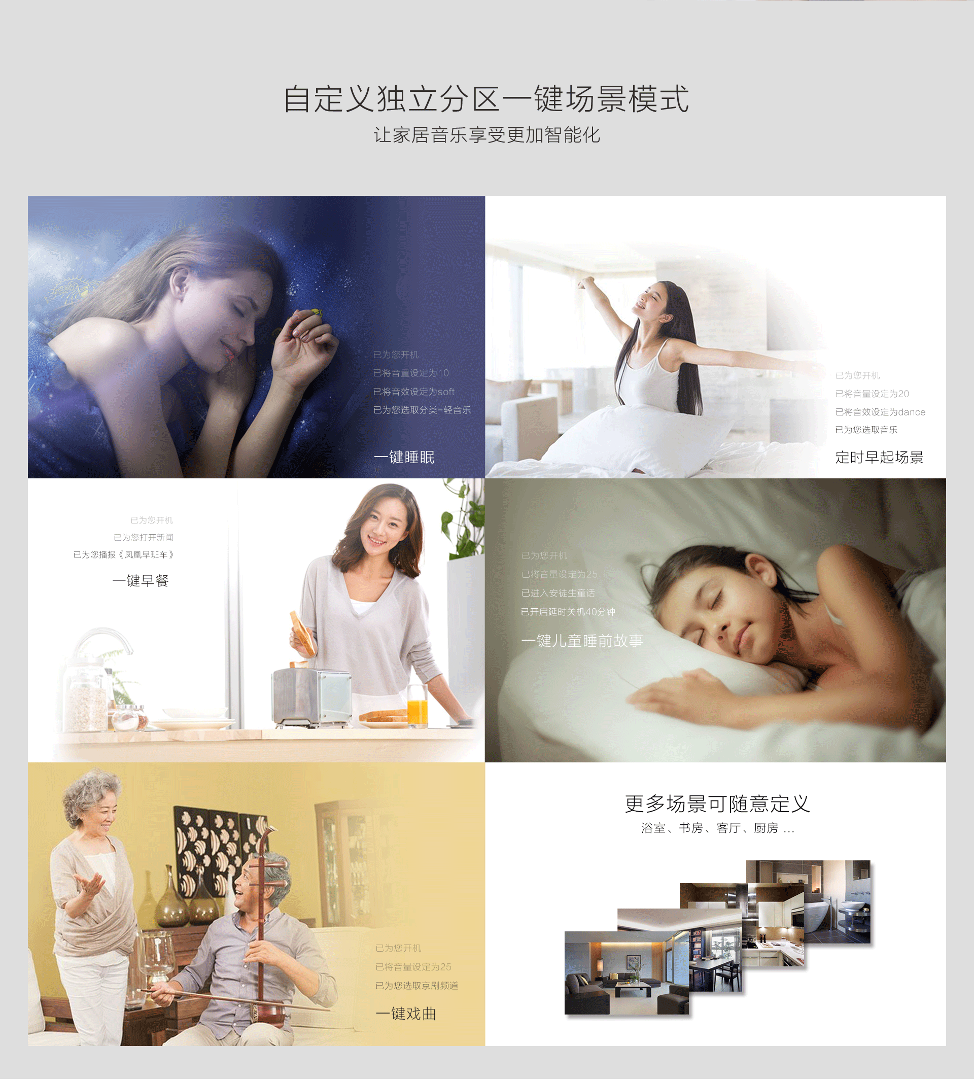 让家里每一个人都在自己喜欢的音乐声中起床。